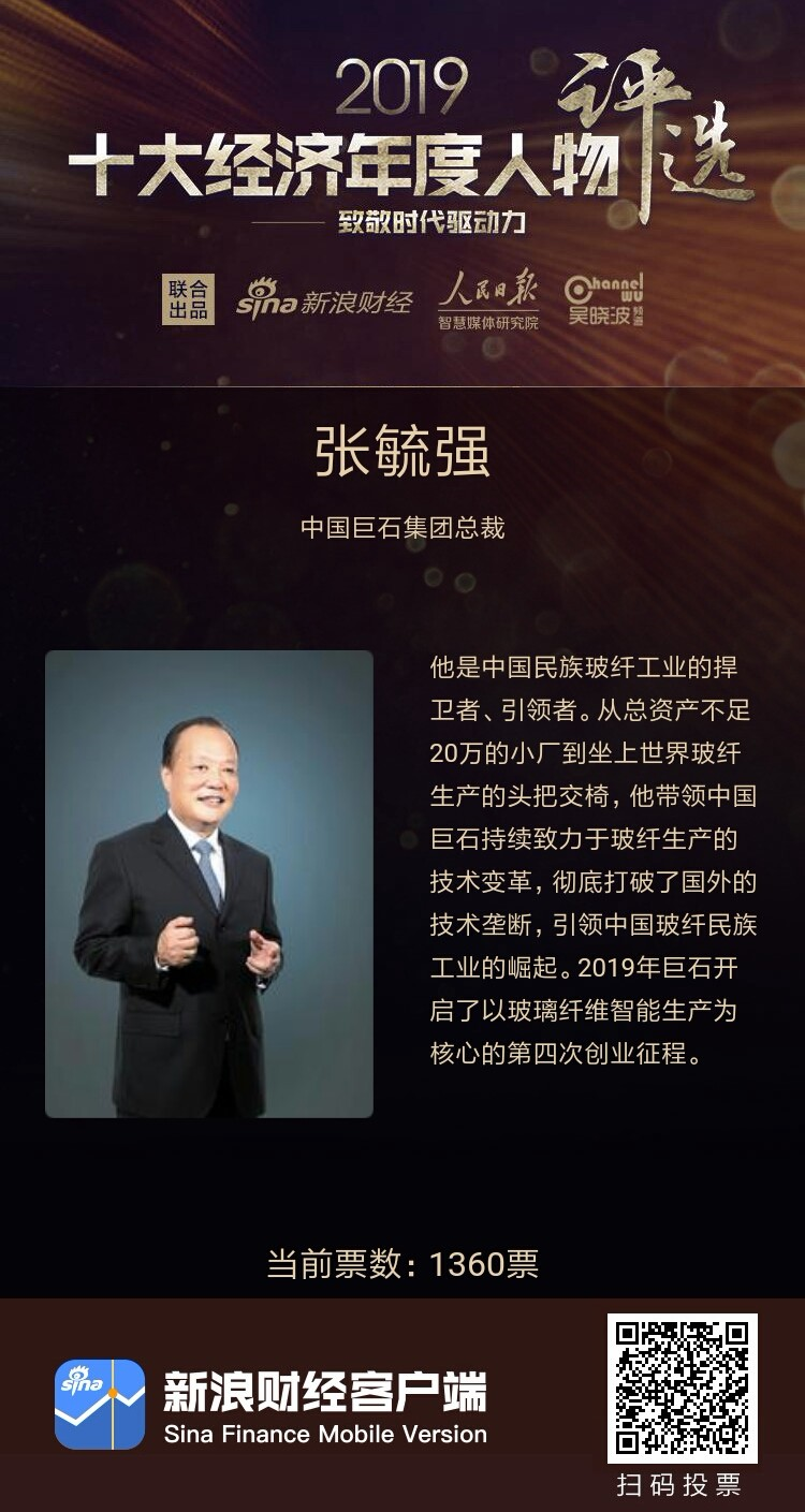 點擊下方圖片——識別圖中二維碼——下載新浪財經(jīng)APP——進入“2019十大經(jīng)濟年度人物評選”投票頁面——為張毓強投票